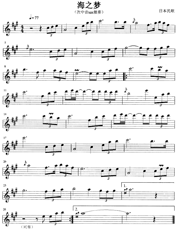 海之梦(日本民歌)[萨克斯谱]