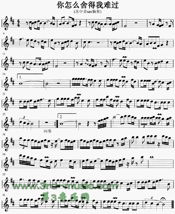 你怎么舍得我难过[萨克斯谱]