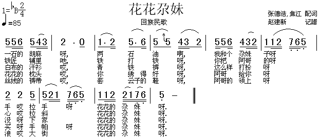 花花尕妹(回族民歌)[简谱]