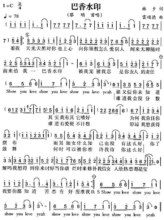 巴香水印[简谱]