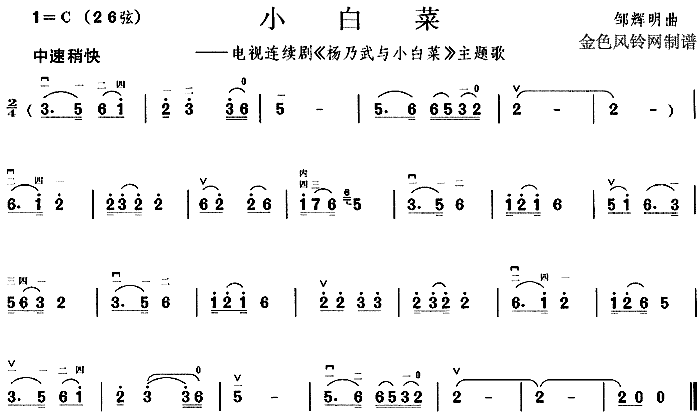 小白菜(《杨乃武与小白菜》主题歌)[二胡曲谱]