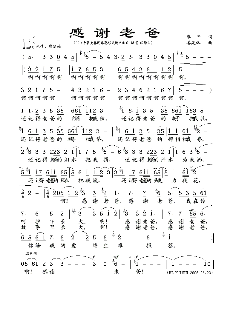 四字歌谱简谱