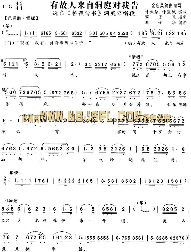 有故人来自洞庭对我告(《柳毅传书》唱段)