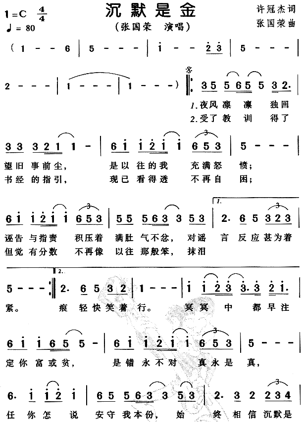 沉默是金(粤语)[简谱]