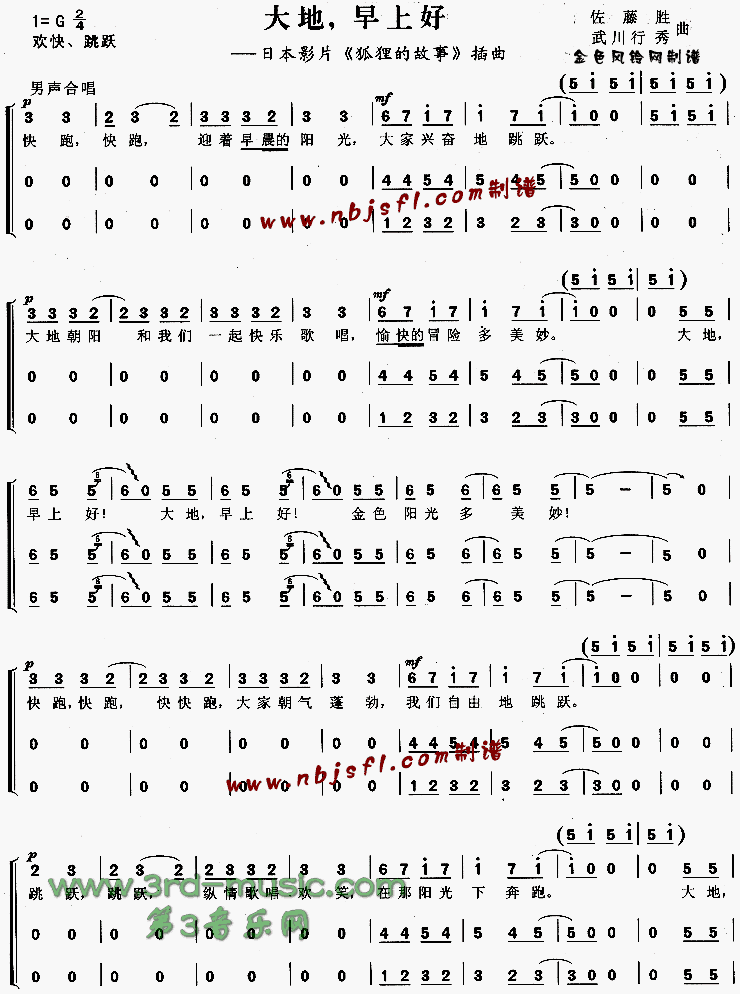 大地早上好(《狐狸的故事》插曲)[合唱曲谱]
