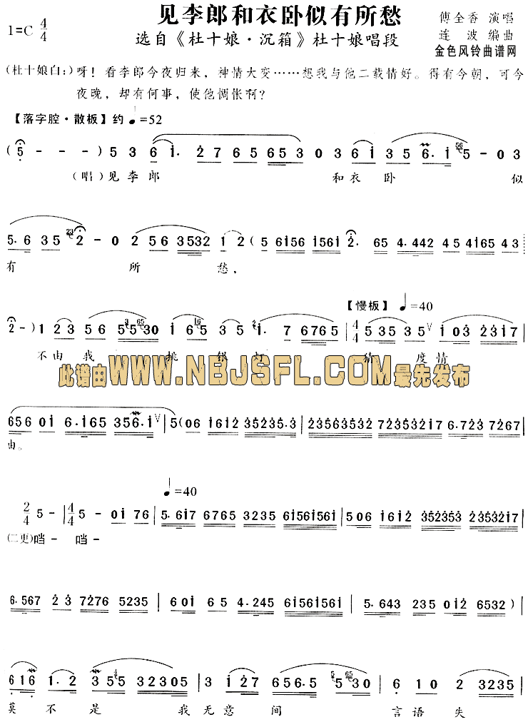 见李郎和衣卧似有所愁(《杜十娘·沉箱》唱段)