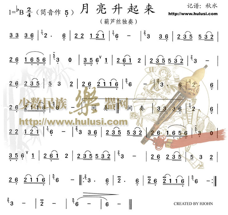 月亮升起来(葫芦丝谱)