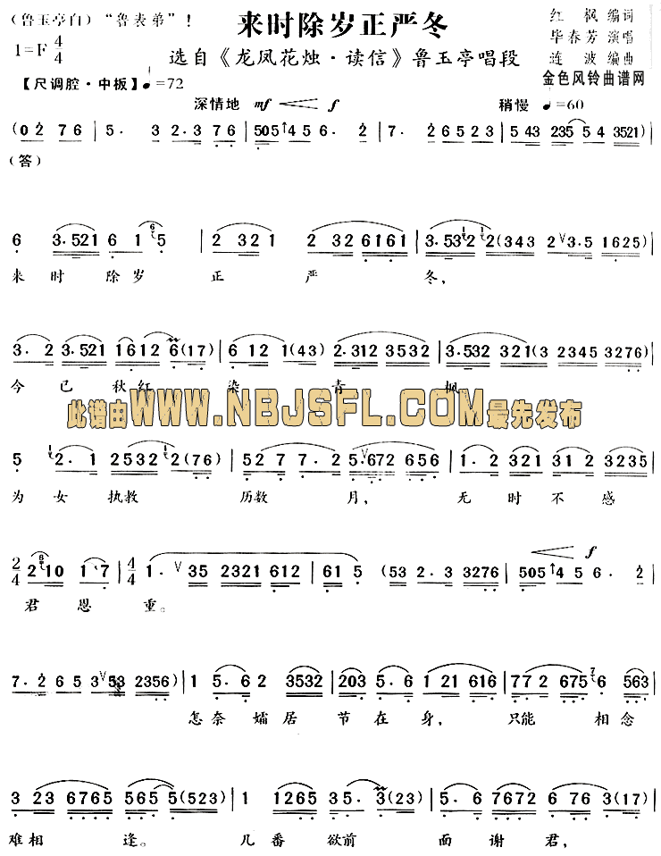 来时除岁正严冬(《龙凤花烛·读信》唱段)