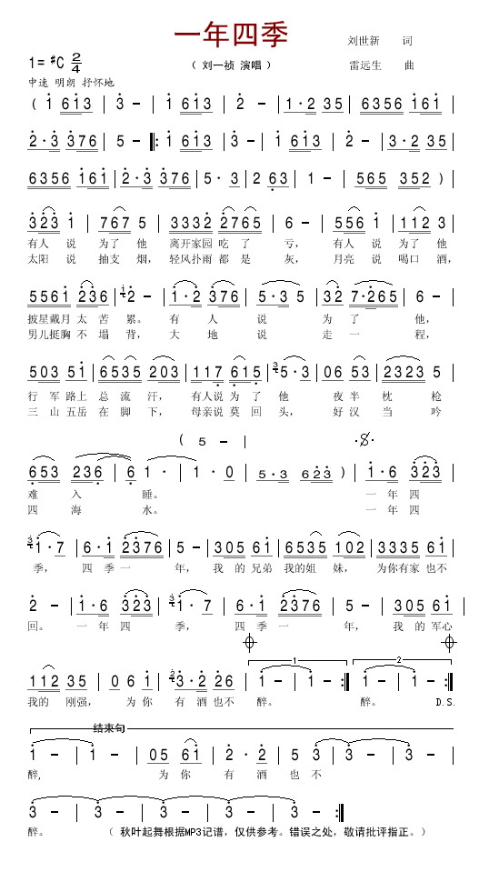 四字歌谱简谱