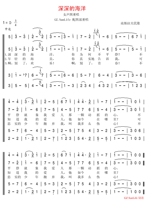 深深的海洋(女声四重唱、南斯拉夫民歌)