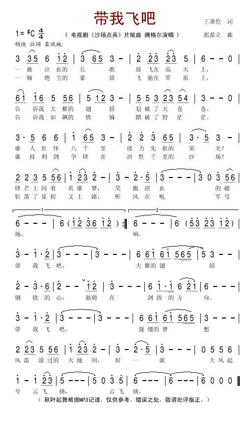带我飞吧(电视剧《沙场点兵》片尾曲)
