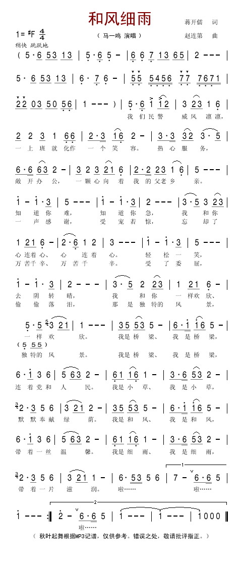 四字歌谱简谱