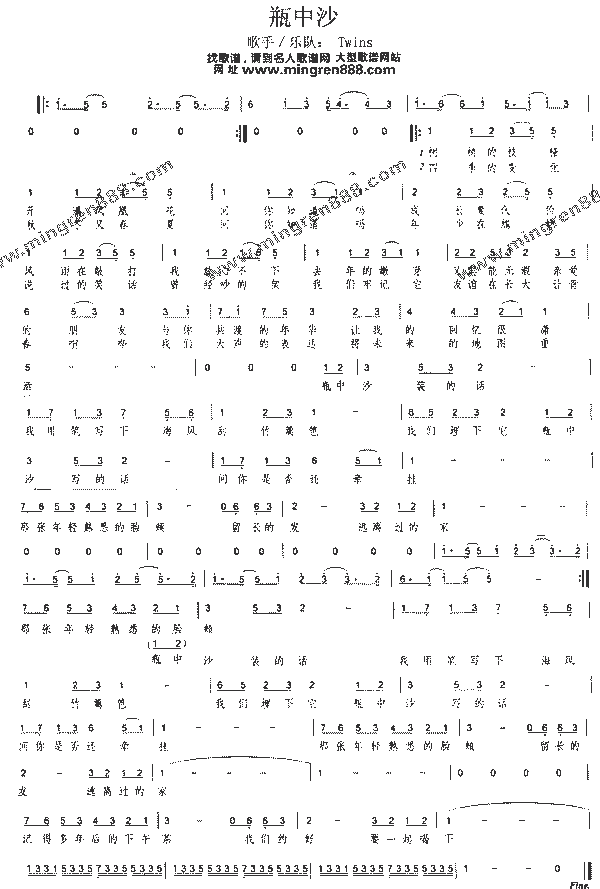 | 树梢的枝桠 开满凤凰花 问你知道吗 成长要代价 风雨在敲打 我放心不下 去年的嫩芽 又怎能无暇 亲爱的朋友 与你共渡的年华 让我的回忆很潇洒 瓶中沙装的话 我用笔写下 海风刮竹篱笆 我们埋下它 瓶中沙写的话 问你是否还牵挂 那张年轻熟悉的脸颊 留长的发 逃离过的家 四季在变化 秋冬又春夏 问你知道吗 年少在尴尬 说过的笑话 曾经吵的架 我们牢记它 友谊在长大 让青春喧哗 我们大声的表达 将未来的地图重画 瓶中沙装的话 我用笔写下 海风刮竹篱笆 我们埋下它 瓶中沙写的话 问你是否还牵挂 那张年轻熟悉的脸颊 瓶中沙装的话 我用笔写下 海风刮竹篱笆 我们埋下它 瓶中沙写的话 问你是否还牵挂 那张年轻熟悉的脸颊 留长的发 逃离过的家 记得多年后的下午茶 我们约好要一起喝下 |
