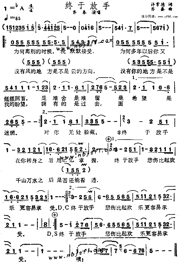 为何离别的时候我默默承受 为何多年以后你又频频挥手 是难舍是难留 是希望是迷茫 没有风的地方是不是你的方向 没有你的地方是不是我的盼望 拥有的是过去 面对你无处躲藏 终于放手 在你转身之后用记忆掌握 终于放手 悲伤比起欢乐更容易承受 为何离别的时候我默默承受 为何多年以后你又频频挥手 是难舍是难留 是希望是迷茫 没有风的地方是不是你的方向 没有你的地方是不是我的盼望 拥有的是过去 面对你无处躲藏 终于放手 千山万水之后是否还能看透 终于放手 悲伤比起欢乐更容易承受 终于放手 千山万水之后是否还能看透 终于放手 悲伤比起欢乐更容易承受 啊噢 |
