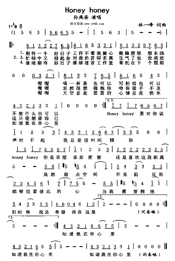 期待一个好日子 工作不需我操心 能随便想想东西 喔喔 喝一杯茶也可以 写封信也可以 不做什么也可以 忙碌中又想起你 对我的若即若离 生气了也没痕迹 喔喔 忽然很想拥抱你 吻你措手不及 这只能想像而已 honey honey 要对你说声对不起 我总是没时间陪你 honey honey 你是否想亲亲密密 还是喜欢这段距离 虽然留点空间不见面 反而能够拉紧彼此的心 当我需要拥抱的时候 我总希望你在这里 啦...... 忙碌中又想起你 对我的若即若离 生气了也没痕迹 喔喔 忽然很想拥抱你 吻你措手不及 这只能想像而已 honey honey 要对你说声对不起 我总是没时间陪你 honey honey 你是否想亲亲密密 还是喜欢这段距离 honey honey 要对你说声对不起 我总是没时间陪你 honey honey 你是否想亲亲密密 还是喜欢这段距离 虽然留点空间不见面 反而能够拉紧彼此的心 当我需要拥抱的时候 我总希望你在这里 继续期待好日子 继续埋首工作里 寄托在下个假期 喔喔 天空总是蓝蓝的 心情总是快乐 知道我在你心里 知道我在你心里 知道我在你心里 知道我在你心里 |