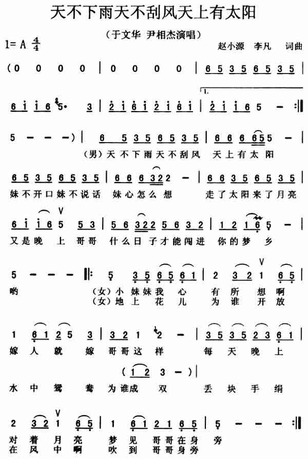 天不下雨天不刮风天上有太阳