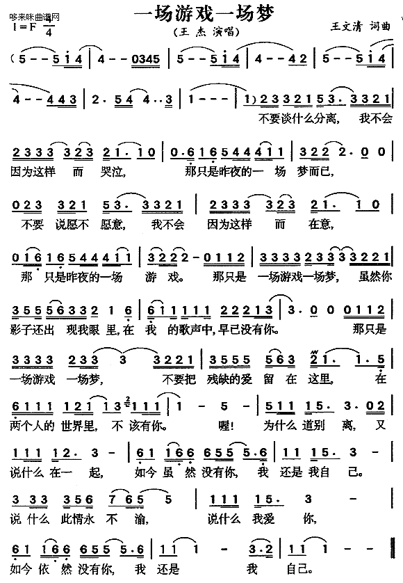 一场游戏一场梦王杰