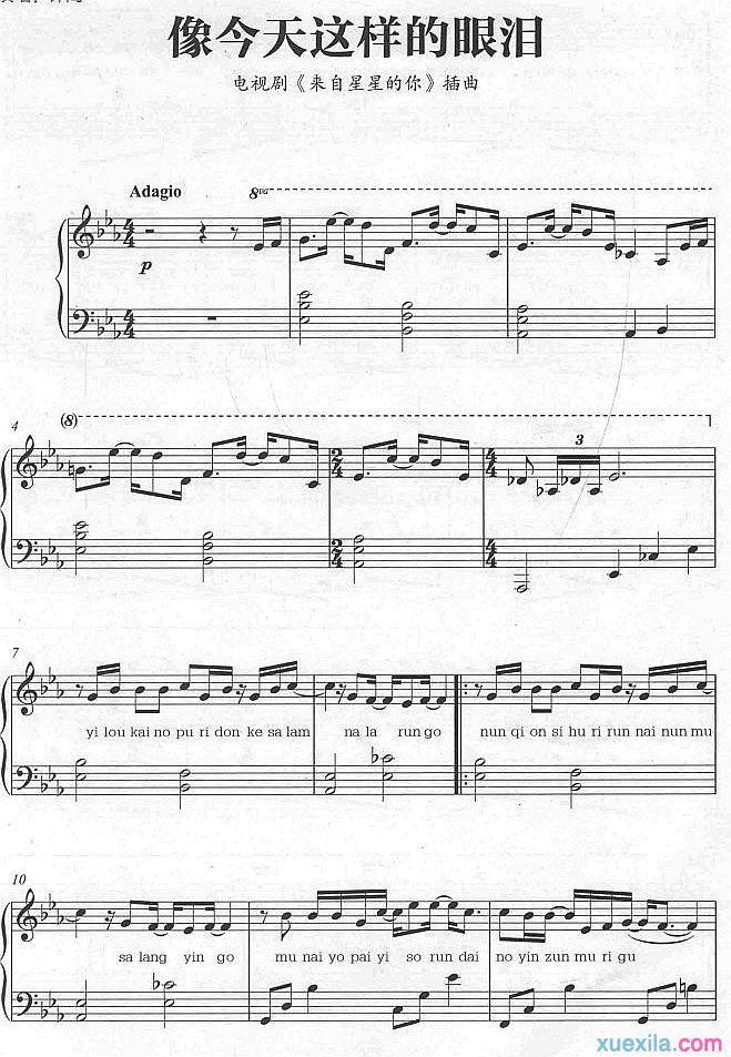今天为大家整理了:像今天这样的眼泪琴谱,希望大家喜欢。