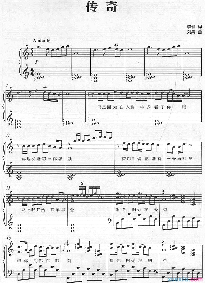 今天小编就为大家整理了传奇的钢琴谱,希望大家喜欢。