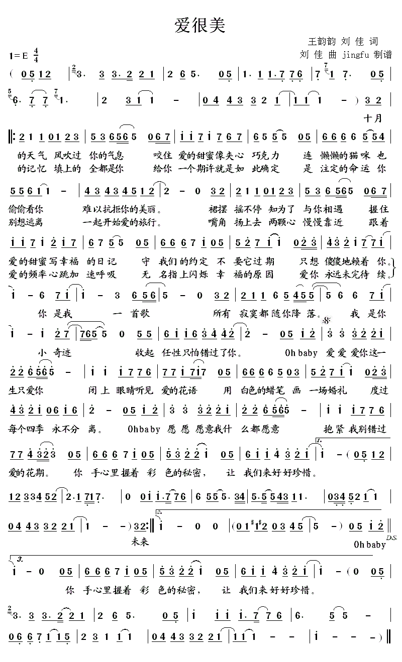 以上就是为大家提供的“爱很美歌谱”,希望大家能够喜欢!