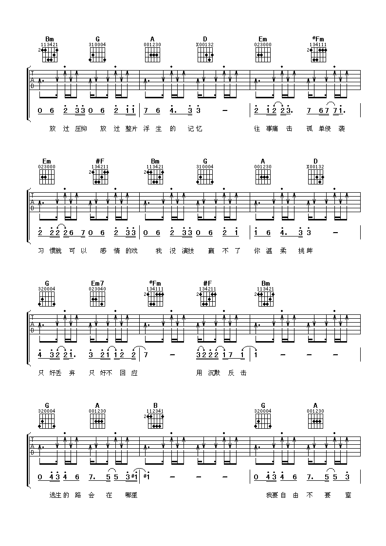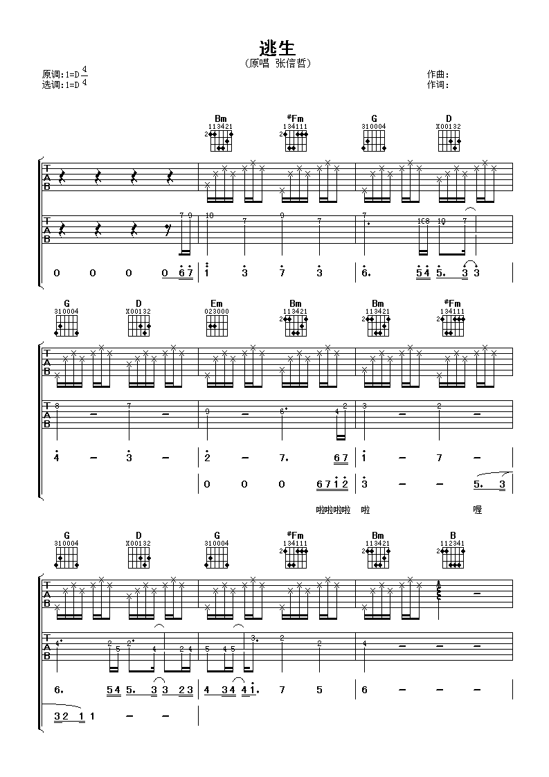 下面是专门为您整理好的:张信哲逃生吉他谱。希望您会满意。