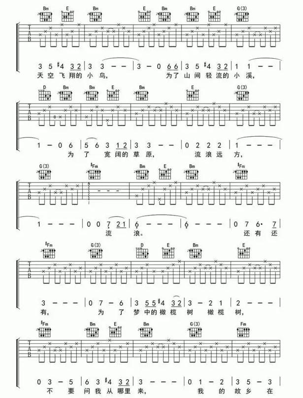 橄榄树吉他谱六线谱关于歌曲鉴赏