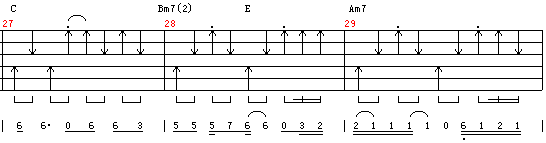 扫弦何时上击何时下击,我建议是按谱上的标法。如果你练习了很多很多种的类型,你也可以不按谱上标的,只要你的节奏是对的,弹的顺手就可以了。