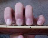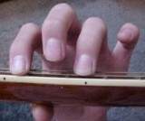 食指、中指、无名指、小指组合方式有很多,但有一些必须坚持的法则:(1)各指要用指尖按弦。(2)各指要尽量垂直于指扳的角度按弦。(3)按弦的位置要尽量靠近品位。(4)各指关节要呈弯曲状,不可僵直或向内弯曲成折指。