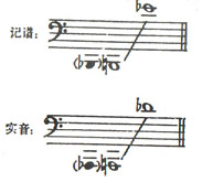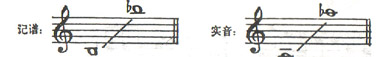 小号演奏介绍:小号bB调乐器,用调高音谱表记谱。记谱比实音高大二度。