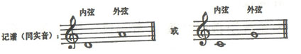 内弦为d1(或c1)、外弦为a1(或g1)。两弦相距纯五度。