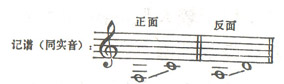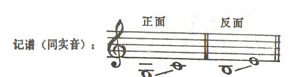 各鼓由大到小,编为1—5号。每个鼓两面的直径大小不同,所以一个鼓能同时定出两个不同音高的音。每面鼓的调音幅度极少超过纯四度。现将各鼓可奏出的音标示如下: