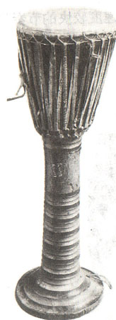 演奏时将鼓身斜挂在肩上(间或将鼓直立于地),双手拍鼓。有正拍、闷拍、指拍(用一个指头)以及拳击等手法,在演奏的高潮或情绪热烈时,甚至手肘和脚也参加击鼓。常用的传统节奏型如下: