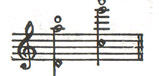 毒曹音域内各音的按音位置上,可奏出比按音高八度加五度的泛音(奏时唇部稍稍闭紧)。如:
