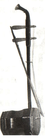 大胡的弓为两弦所夹,演奏拨弦有困难。