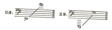 低音提琴独奏时,如必要也可用中音谱表或高音谱表记谱。