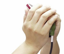 注:使用琴麦的时候,右手的动作便需要稍微夸张一点(如右图),使震音可明显一些。