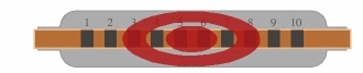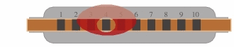 另外有一种口含个半孔的颤音方法(如右图),能增添粗野的蓝调韵味。 颤音裹还有一种效果是在吹奏八度和音的时候再加上颤音。所奏出来的音会很丰满。