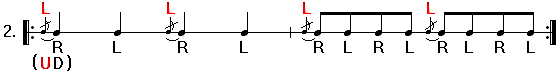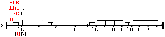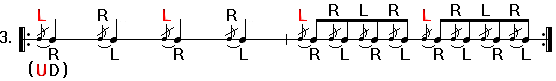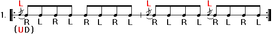 请使用节拍器从很慢很慢的速度练起。等装饰音的打击时间可以掌握之后再慢慢地把速度加快练习。