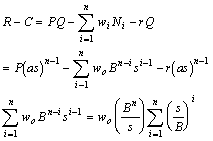 四、农业产业一体化的局限性 农业产业一体化除了上述的积极作用以外,还具有各种局限性。首先必须注意到“企业规模效率递减”问题。采用农业产业一体化的结果是龙头企业的管理范围扩大。如果没有建立相应的管理组织形式,提高管理阶层的管理能力和企业内部以及企业内部同外部的信息传递、处理能力,不仅不能提高企业的效益,相反还有可能使企业遭受经济损失。以下试图用模型来说明企业规模和管理效益二者间的关系。设: s = 管理人员的管辖范围,即管理人数 a = 企业内部效益,即部下对上司命令的执行程度,( 0 < a < 1) Ni = 第i管理阶层的工作人员数 = n = 管理阶层数 P = 产品价格 w0 = 从事直接劳动者工资 wi = 第i阶层工作人员工资 = r = 除工资外的单位产品成本 θ=投入量同产出量的转换系数 R = 企业总收益= PQ C = 除工资外的产品总成本 = 企业的纯利润是,