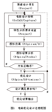(2) 根据待优化的特性参数类别调用PSpice A/D进行电路模拟检验,确保电路设计能正常工作,基本满足功能和特性要求;