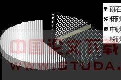 图1 探水孔横断面布置 图2 注浆段地质情况示意 在探水孔施作过程中,探1#在整个钻进过程中,岩粉为深灰色颗粒,有白色方解石颗粒,有刺激性气体逸出;钻至3m处为破碎岩层,宽度约0.2~0.3m,钻孔内有水涌出,涌水量为20m3/h,充填有黄泥;8~40.6m岩粉为深灰色,较坚硬,局部有破碎灰岩,发生卡钻。探2#有少量水,钻进过程岩石破碎。探3#孔深30.20米,当探水孔钻至15 m处有0.3~0.5 m岩溶管道,有岩溶水涌出,充填有泥砂和粘土,并含少量砾石,6月27日测得钻孔涌水压力为1.4MPa,全孔涌水量实测100 m3/h左右。于今年6月28日结束探孔。通过探孔情况和地质资料分析掌子面前方3m处有一宽度较小的破碎带,在15m处发育一小型岩溶管道。由于泥砂太多及停电影响,同时洞外大量降雨,导致探3#孔涌水量及水压急剧增大, 7月5日涌水量增大到200 m3/h左右,由于此处反坡开挖,抽水设施由于泥砂和停电的影响导致掌子面大量涌水不能抽出,引起掌子面淹没。后加快抽水,将掌子面水用两路Φ150mm钢管引出,并在掌子面施作了模筑混凝土封闭掌子面,止浆墙厚2m,又因水大混凝土密封困难改为3m。掌子面稳定后又进行了TSP地质预测预报和红外线超前探水等探测和验证。根据以上地质预测预报成果可判定前方地质条件大致如图2所示。 2.2 涌出物分析 今年6月29日现场采集涌出物并对涌出物进行筛分试验,测试结果图3、图4示。