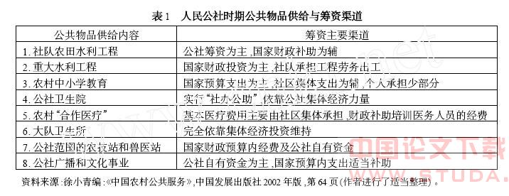 从乡村治理与农村公共物品供给制度的内在关系上考察,农村公共物品供给制度的历史演进可划分为三个时期:传统农业社会的公共物品供给制度、人民公社时期的公共物品供给制度和家庭联产承包责任制下的农村公共物品供给制度。