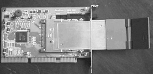 图5 将PCMCIA卡安装到转接卡 7.修改/etc/pcmcia/config。该文件是提供cardmgr启动、识别有关module文件和硬件的依据。在文件中加入下面的内容: