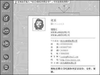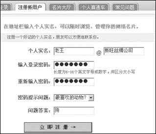 | 老王开了新旺丝绸公司当老板,请了一名计算机专业的人才小张当会计。一天老王去会计室看见会计小张,正在上网给朋友发名片,这名片可比自己的名片漂亮、信息内容丰富。老王笑着对小张说:“你这个名片是怎么弄来的,也给我做一个呀。”小张赶紧起来让坐,耐心地讲解起来。 一、网络名片的特点 网络名片就是保存在网络上的名片。与普通的名片并没有什么实质性的不同。普通的名片,一旦你送出去之后,就不会改变了。以后你的联系地址、电话等信息发生变动后,就得一一通知,否则别人就会与你失去联系。而网络名片,只需要把网络名片号码或网址告诉你的朋友,以后一旦联系信息发生变动,只要更新一下网络名片上面的信息即可,不必再一一通知亲友,他们一看你的网络名片就能知道最新联系信息了。另外,网络名片是免费的,你可以免费使用,不需要任何花费。 二、申请网络名片