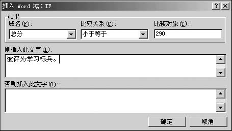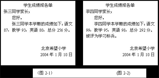 有时我们需要给不同的收件人发去内容大体一致,但是有些地方有区别的邮件。如寄给家长的“学生成绩报告单”,它根据学生总分不同,在不同的报告单中写上不同的内容,总分超过290分的学生,在报告单的最后写上“被评为学习标兵”(如图1右),而对其它的学生,报告单中则没有这一句(如图1左)。