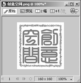 3. 点击“文字”工具按钮,用鼠标在上一步设置完成的红色边线内拖拽出文字输入区域,键入“创意空间”四个字。字号的大小要根据所画出的正方形印章的大小来设定,使其能够正好将所有文字容纳进去。至于文字字体的选择,这是印章效果的一个重要设置,Windows字库中的字体是不能够满足需要的,为了达到逼真的古印章效果,我们可以下载一些古体、繁体字库,将其放入Windows目录下的“Font”文件夹中即可。图2中使用的是“迷你繁方楷”,另外“文鼎古印繁体”或者“长城古印繁体”的效果也非常好。