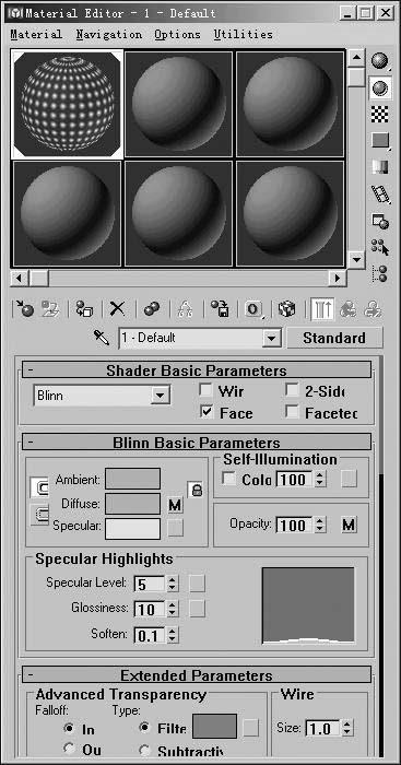 在菜单中依次单击“Radering→Material Editor”或按键盘上的“M”键,打开材质编辑器,激活一个示例球,将它赋予场景中的超级喷射粒子。
