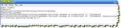 multi(0)disk(0)rdisk(0)partition(2)\WINDOWS="Windows Server 2003, Enterprise" /fastdetect