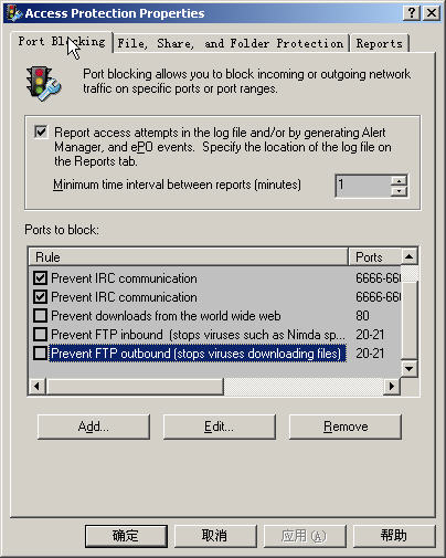 3.还有把这项前的勾去掉,或是在里面的规则里加上你要访问ftp的程序,如flashfxp,flashget等,如果不这样做有些ftp访问会出现连接失败 (10053:软件引起连接放弃)的错误。