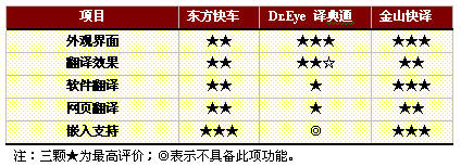 | 虽说网络上的中文信息已相当丰富了,但如果要获得国外的最新资讯或特定内容,就需要浏览非中文网站;再者,很多优秀的共享软件都是英文界面的,国外发来的邮件也多是英文的……但很多朋友却对英文望而生畏。面对着这些由语言障碍而产生的隔阂,我们自然要通过翻译软件来加以消除了。在本文中,我们将对目前翻译效果较好的全文翻译类软件进行一番评测,以帮助大家了解各个产品的特点。 测试平台: CPU:P4 1.8GA 参评软件及特点: 1.金山快译2005 简体中文专业版 金山快译2005采用了最新AI人工智能翻译引擎,其翻译品质有了一定的提升。 2.东方快车2003 正式版 “东方快车”近段时间一直没有新版推出,因此我们选用了其较新的2003正式版。该版本将多语翻译应用于各种使用场景;独家应用环境互动翻译技术,针对不用应用环境自动选择最合适的搭配;完美结合人工翻译和自动翻译,有效提高翻译质量。 3.Dr.Eye 译典通 2003 v5.0100.2000 相对于以上两款软件,Dr.Eye“译典通”大家可能还不是很熟悉,但它却是一个相当成熟的产品。它采用超强核心技术,且具备丰富的资料库,只需0.2秒取词时间即可实现英、日、中三语互译,词语变化、短语、辨析、例句,一应俱全。 一、外观界面 1.金山快译 ![]() 单从外观来说,“金山快译”是本次参评软件中最具时尚感的,按钮设计凸凹有致,颜色典雅。还支持自动隐藏于屏幕边缘。 2.东方快车 ![]() 与目前的主流软件相比,“东方快车”的界面显然有些不合时宜了,略显呆板。程序虽具有换肤功能,但只预置有一个标准皮肤。“东方快车”支持自动隐藏界面。 3.Dr.Eye 译典通 ![]() 该程序的功能按钮最多,这就使得状态栏界面占屏幕空间较多,而且只支持缩放显示基本按钮或扩展按钮,却不能自动隐藏状态栏。不过,可自定义状态栏状态为窗口、横向、纵向或吸附。其中,吸附功能最具特色,启用后,将在当前窗口的标题栏上将被吸附上Dr.Eye标识,把鼠标指针置于该标识上时,才会在展开的界面中显示功能按钮。 二、翻译引擎 1.金山快译 支持英对中、中对英、日对中等六向翻译引擎,在安装时可自行选择。 2.东方快车 支持英对中、中对英、日对中三种翻译引擎,已预置于程序中,启用“多语搜索”功能即可。 3.Dr.Eye 译典通 支持中、英、日三种语言。 三、单句翻译效果 我们使用以下几段内容作为翻译测试内容,实际测试一下各款翻译软件的翻译效果。由于这种测试的偶然性比较大,因此我们选择了多种句型,尽量保证评测的客观性。 1.金山快译翻译结果: 2.东方快车翻译结果: 3.Dr.Eye 译典通(全文翻译)结果: 实例2:The coin rolled under the table. 1.金山快译翻译结果: 2.东方快车翻译结果: 3.Dr.Eye 译典通(全文翻译)结果: 实例3:Where did the accident take place? 1.金山快译翻译结果: 2.东方快车翻译结果: 3.Dr.Eye 译典通(全文翻译)结果: 1.金山快译翻译结果: 2.东方快车翻译结果: 3.Dr.Eye 译典通(全文翻译)结果: 实例5:He is always running out of money before payday. 1.金山快译翻译结果: 2.东方快车翻译结果: 3.Dr.Eye 译典通(全文翻译)结果: 四、全文翻译效果 原文: Improvement One student to another: "How are your English lessons coming along?" 参考译文: 进步 一位学生对另一位说:“你的英语最近学的怎么样?” 1.金山快译翻译结果: 改进 一个学生到另外的:“如何是你的英文功课来达往前?” 2.东方快车翻译结果: 改进 一名学生到另外的:“你的过来的英语的课怎么样?” 3.Dr.Eye 译典通(全文翻译)结果: 改进 对另一个学生的一个学生:“你(们)的英语(国)课程向前如何来? ” 从翻译结果看来,这三款软件令我们有些失望,均没有准确翻译出原意。但相对而言,Dr.Eye 译典通的翻译多少还贴切些。 五、软件界面翻译 1.金山快译 程序提供了1000个常用软件汉化包(在安装时,需选择),针对200多个常用英文软件深度汉化。在启用“永久汉化”程序后,用户还可自行添加修改和汉化指定软件,并生成永久的汉化包。若使用即时翻译,可启用双语菜单,以使软件同时显示英、中文。 2.东方快车 程序拥有800多个软件汉化包,数量相当丰富。此外,从即时翻译的效果看来,与某些应用程序的兼容性存在着一定问题。在有些时候,取消汉化后都无法恢复(显示)为正常菜单项。 ![]() 3.Dr.Eye 译典通 不支持软件汉化包,只可进行即时汉化,但有些英文单词未能汉化,效果不甚理想。 六、网页翻译 1.金山快译 网页版式保持得较好,但有些会出现重叠翻译结果中汉字的问题,而且速度较慢。 2.东方快车 翻译效果一般,但速度较快。 3.Dr.Eye 译典通 比较“挑食”,不支持翻译非HTML文档的网页。 七、嵌入支持 1.金山快译 与“东方快车”支持的嵌入应用程序几乎雷同,比较常用的是利用Word中内嵌快译工具栏,快速将当前文档进行中英/英中翻译。 2.东方快车 支持IE与Microsoft Office等常见应用软件深层嵌入,这样可便于随手翻译。 3.Dr.Eye 译典通 不支持对应用程序的嵌入。 总体评估: ![]() 由于技术所限,目前全文翻译类软件还不能代替人工翻译,无法满足用户的实际需求,其翻译效果还有待提高。 综合来看,“金山快译”在各个方面的表现比较平均,在外观及软件界面翻译上,要远远好于另外两款软件。其翻译效果也还算不错,建议普通用户选择这款软件。 而在翻译效果方面,大家不太熟悉的Dr.Eye译典通则要略微好于另外两款软件,可